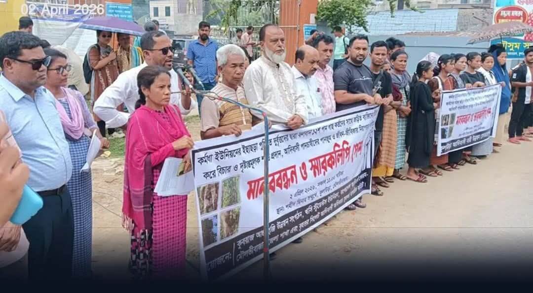 Photo: Protest meeting at Kulaura An allegation has been made that miscreants cut down more than a thousand betel leaf plants belonging to a Khasi farmer in Kulaura Upazila of Moulvibazar. The incident took place late at night on Saturday (March 28) in the Isachhara Khasi Punji of Karmadha Union in the upazila. The affected
